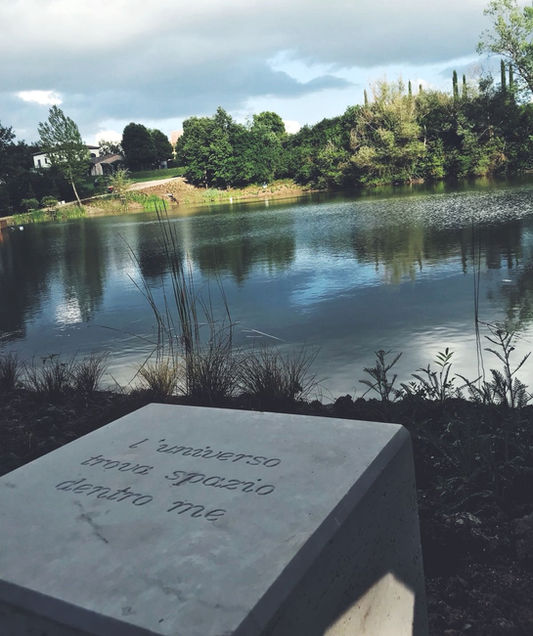 In Umbria a La Tenuta dei Ciclamini, dove ha sede la scuola di musica di Mogol, abbiamo portato nuova vita al lago con un giardino lungo la sponda puntellato da 12 cubi in travertino dove abbiamo fatto incidere alcune tra le parole più belle scritte da Mogol per Lucio Battisti